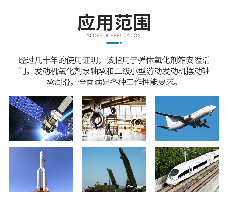 - 具有良好的抗化學性能、良好的潤滑性能和低溫啟動性經(jīng)過幾十年的使用證明該脂用于DF-5彈體氧化劑箱安溢活門,發(fā)動機氧化劑泵軸承和二級小型游動發(fā)動機擺動軸承潤滑,全面滿足各種工作性能要求。